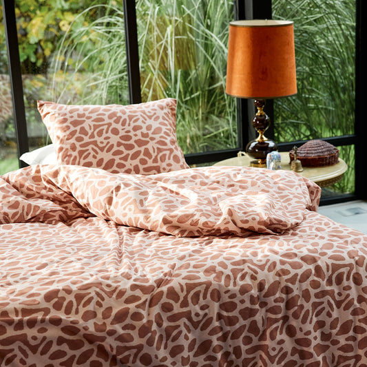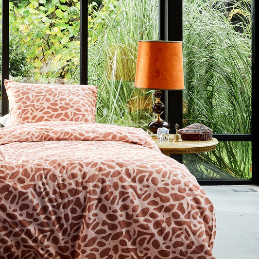 Durf op te vallen met dekbedovertrek Savanne. Het speelse patroon is geïnspireerd op een dierenprint. De roze terra kleuren maken het een eigentijds dekbedovertrek dat perfect past in een kleurrijk interieur. Word energiek wakker met dit stijlvolle overtrek.
